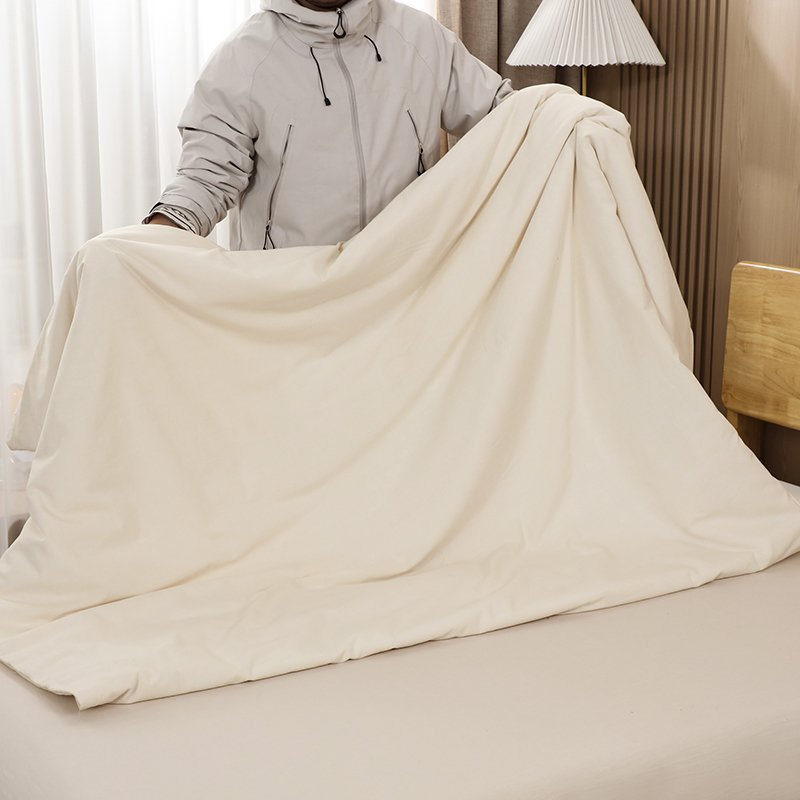 掛け布団カバーとウォッシャブル水洗い綿を一体縫製した仕様。約2kgと軽量で通気性が良く、無臭で快適。夏はそのまま使用し、冬は中にお好みの布団芯を追加して保温性を高められます。
